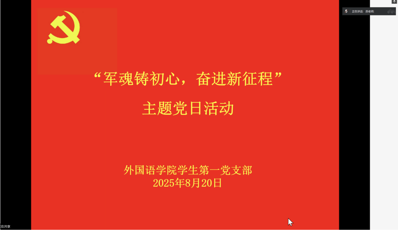 为深入学习和弘扬“坚定信念、听党指挥、为民奋斗、百折不挠”的八一精神,引导党员赓续红色血脉、坚定理想信念,乐竞学生第一党支部于2025年8月20日通过腾讯会议平台组织开展“军魂铸初心,奋进新征程”主题党日活动。本次活动紧扣八一建军节主题,形式多样、内容扎实,全体党员积极参与,共同感悟人民军队的光荣传统与精神力量。
