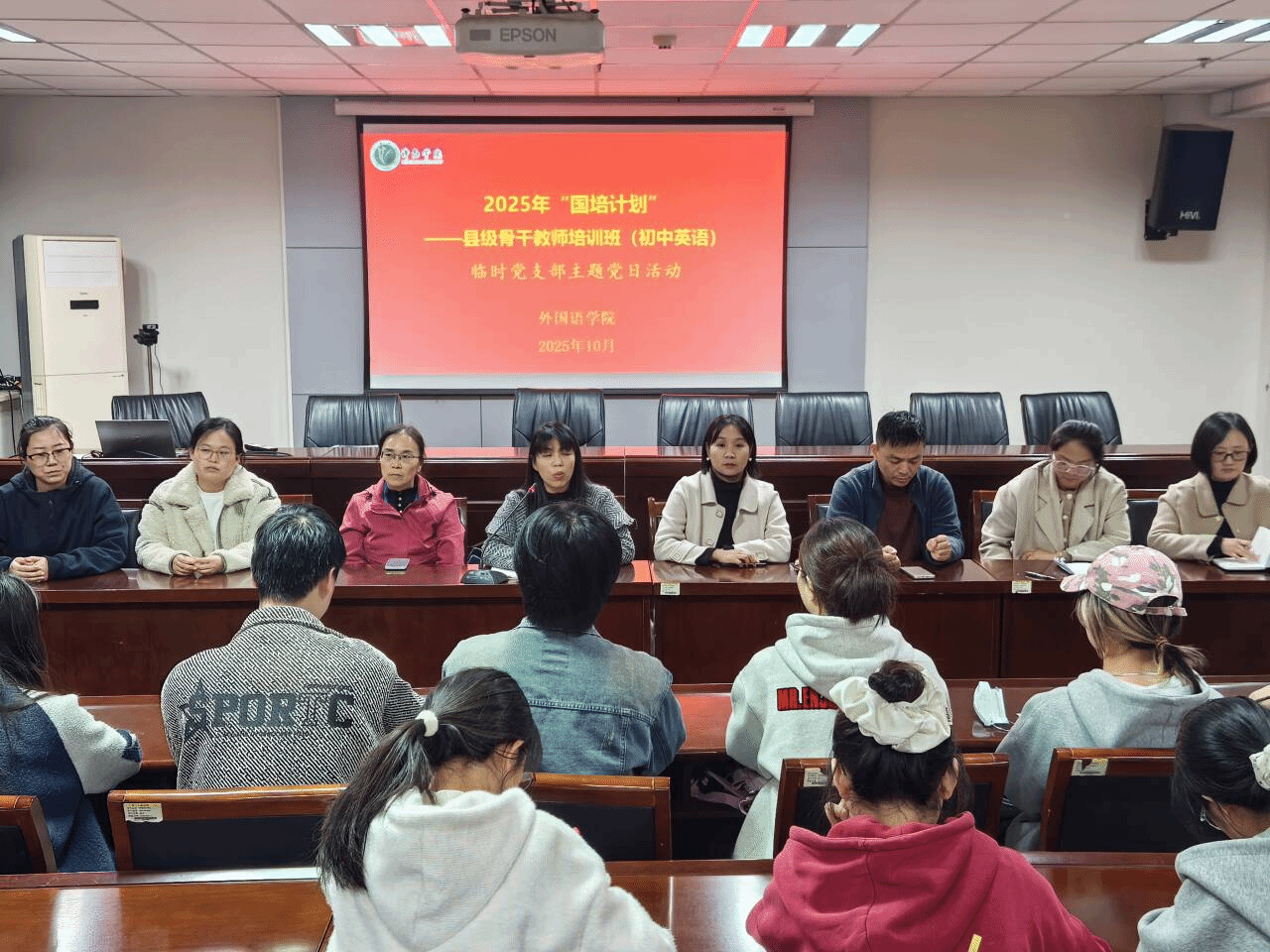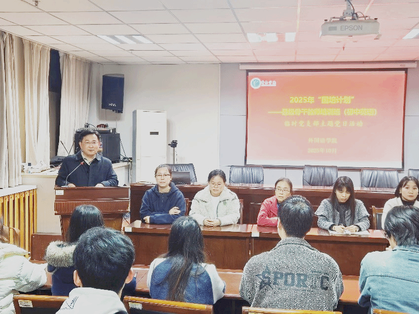 为进一步强化教师培训管理工作,充分发挥党支部的战斗堡垒作用和共产党员的先锋模范作用,2025年10月22日,乐竞教工第一党支部联合本年度“国培计划”县级骨干教师培训班临时党支部举办了“红色领航”活动。乐竞党委书记刘立胜、教工第一党支部书记赵菁晶、师范生工作坊指导老师李茜,以及“国培计划”培训班的50名成员参与活动。