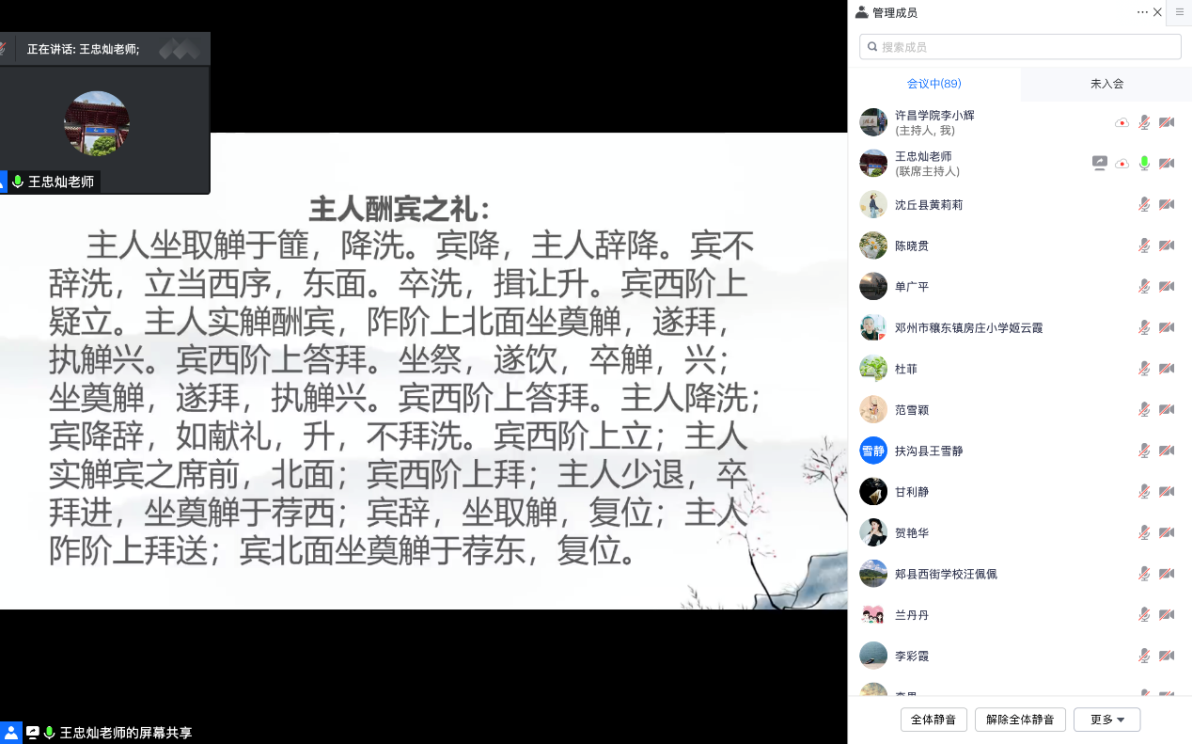 1月2日上午,许昌学院法学院副院长王忠灿博士以《德训、德教、德化:中国传统育人三境界与师德养成》为题,为乐竞(中国)一站式服务官网国培学员作了一场精彩的讲座。国培学员相聚腾讯会议,共同聆听了讲座。